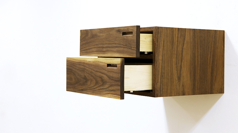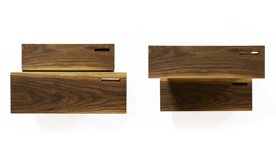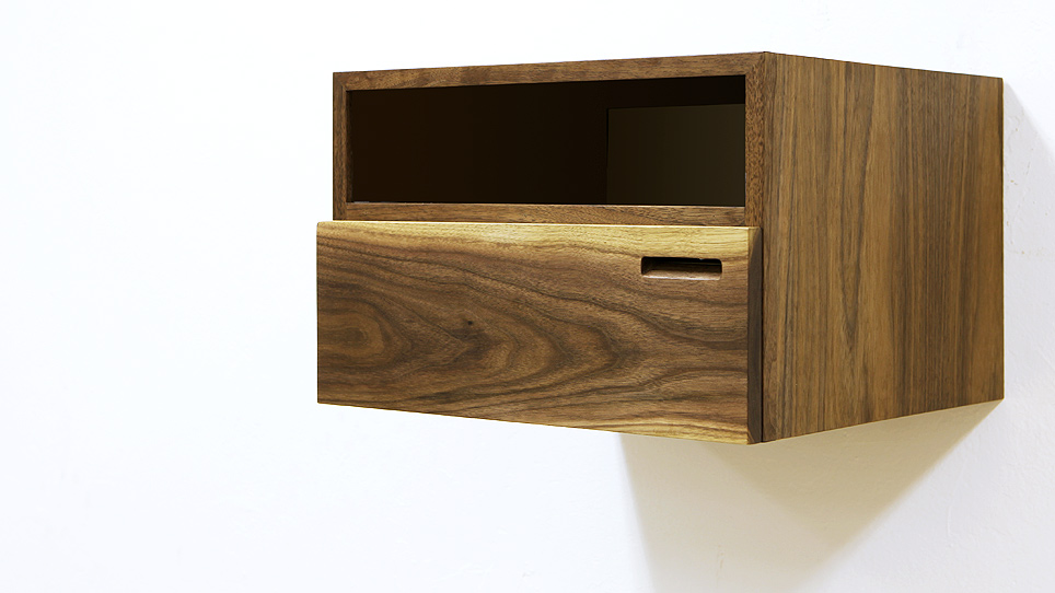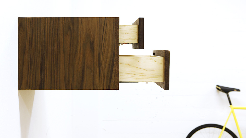 I've been looking at extending the design of the Bike Shelf to other objects and a side table seemed to be the natural next step. Using the same hanging cleat system as the Bike Shelf, this side table hangs from your wall, creating a nice floating storage system and table surface that can live on either side of your bed, or practically anywhere else on a wall that you would like.